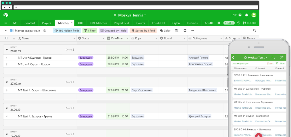 Профили участников, расписание матчей с уведомлением игроков по СМС, результаты матчей, рейтинговая система. Мобильная версия сайта.